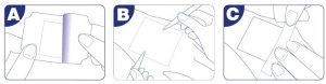Pharmapad is a wound dressing, having a low adherent finely perforated net on both sides of an absorbent wound pad.